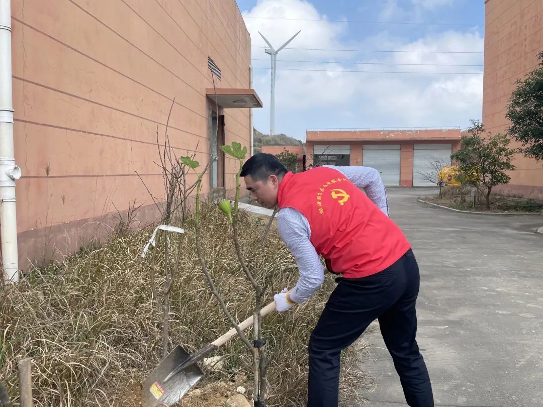 線下,能源公司的黨工團志愿者們帶上樹苗、扛起鋤頭,奔赴平陽西灣及蒼南霞關兩個風電場,在暖陽下,挖坑、栽樹、壓土、澆水...... 各個環(huán)節(jié)銜接有序,配合默契,認真地完成每一道工序,一棵棵新苗就穩(wěn)穩(wěn)地在土里扎下了根,為風電場的春天又增添了一抹新綠。